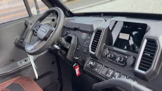 • Electronic power steering, Bosch® EFI, electronic throttle with work/normal modes, OmniDrive™ CVT, 4500 lb. winch with synthetic rope, 3-person bench seats, CFMOTO LED™ headlights/taillights with backup lights, tilt steering wheel, CFMOTO RideSync app compatible (T-Box), 12V outlet, USB port, push button shifting and starting, nfc key, 8" CFMOTO RideSync touchscreen display, electronic / hydraulic tilt bed, skid plate, front & rear sway bars, Hill Descent Control, locking front and rear differential, side rear view mirrors, roof with headliner, bus bar, 2" receiver, adjustable driver seat, audio package, power glass tip out windshield with wiper, sliding rear glass window, full locking doors with power glass windows, factory installed HVAC,150amp charging system