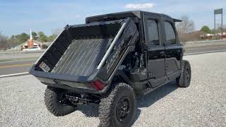 - Cab Components: Factory-installed cab system with tinted powered doors, roof, tip-out glass windshield, tinted glass rear panel, rearview mirror, windshield wiper/washer, and sound insulation materials | Speed Limiting: Speed limiting controlled in RIDE COMMAND | Heat and/or Air Conditioning: Factory-installed heat, AC, defrost, recirculation with 5 different airflow settings | Winch: Polaris Pro HD 6,000 LB Winch with synthetic rope, Auto Stop, wireless remote and Rapid Rope Recovery | Vehicle Protection: Large steel bumper, full-coverage skid plate, bumper D-rings, and top bar | Door Type: Powered tinted window doors—front and rear